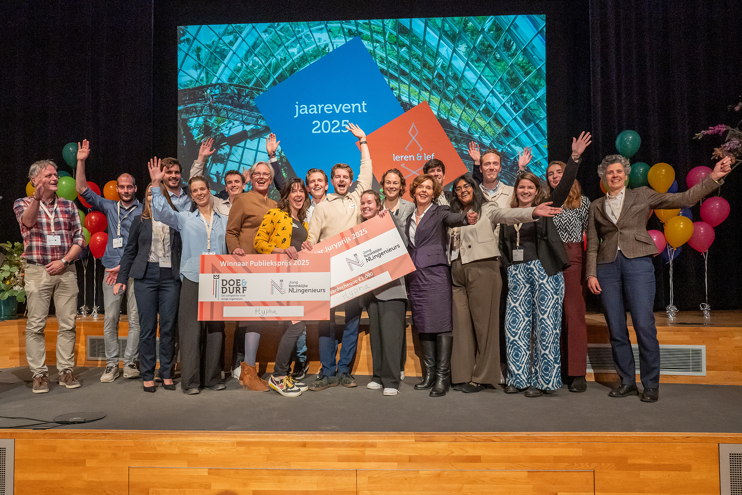 Tijdens het jaarcongres van Koninklijke NLingenieurs op 13 november werd bekendgemaakt dat onze inzending Hypha zowel de juryprijs als de publieksprijs heeft gewonnen. Een geweldige erkenning voor het talent en de creativiteit van ons team jonge ingenieurs!
